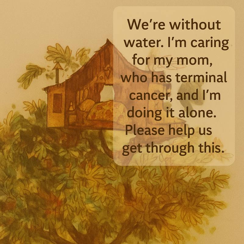 I’m raising money because our water has been shut off, and I need help caring for my mother. I’m an only child, and my mom has recently been diagnosed with incurable plasma cell cancer. We’ve lived in this house my whole life—it’s our home, our history—but lately, everything has gotten overwhelming.